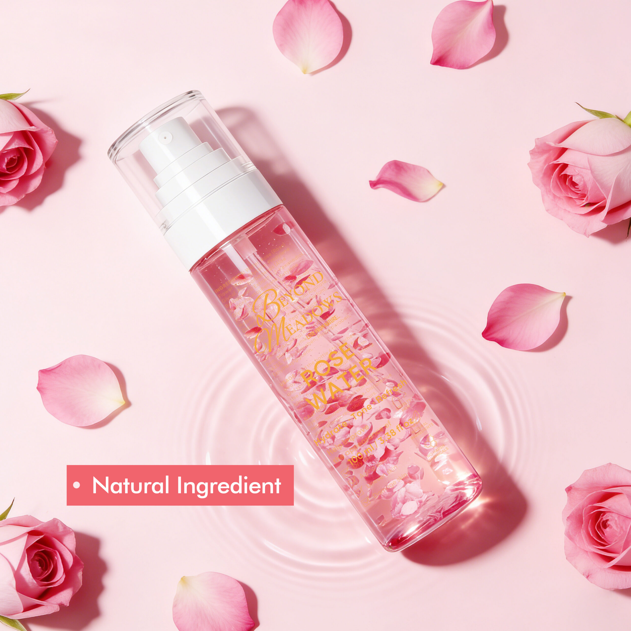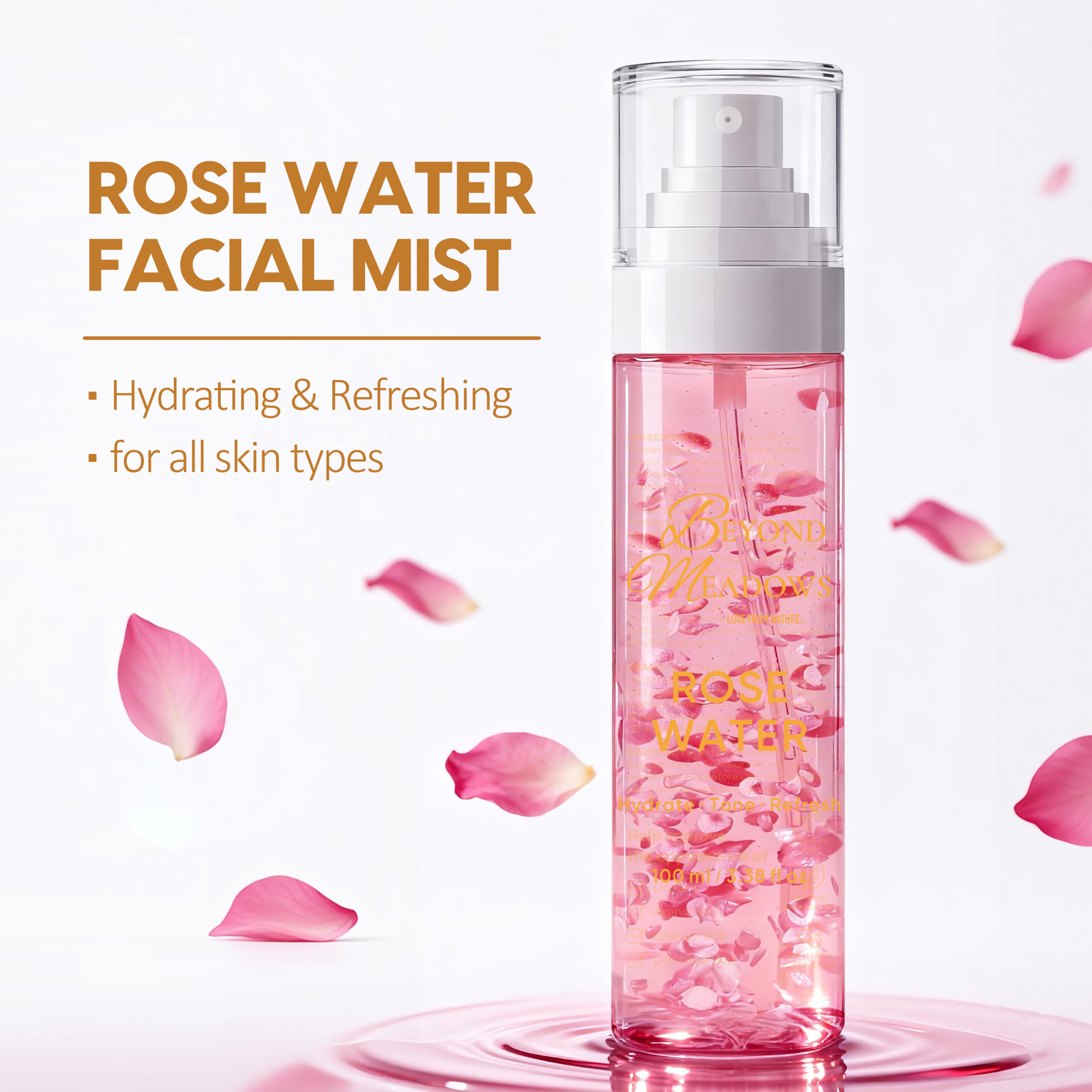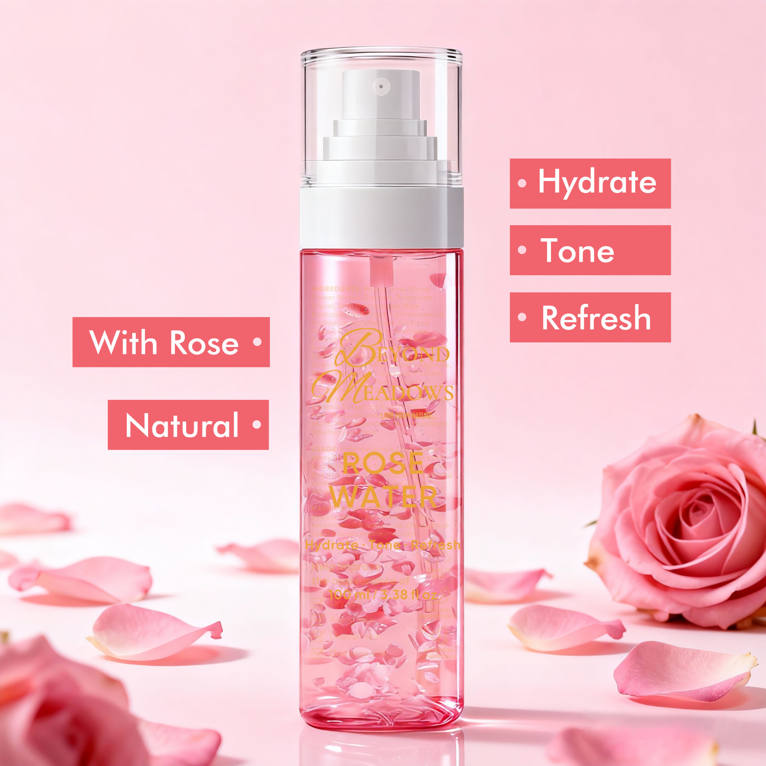 Beyond Meadows Rose Water Spray – Hydrating Rosewater Mist for Glowing Skin, Face Toner & Hair Refresh Spray (100 ml)